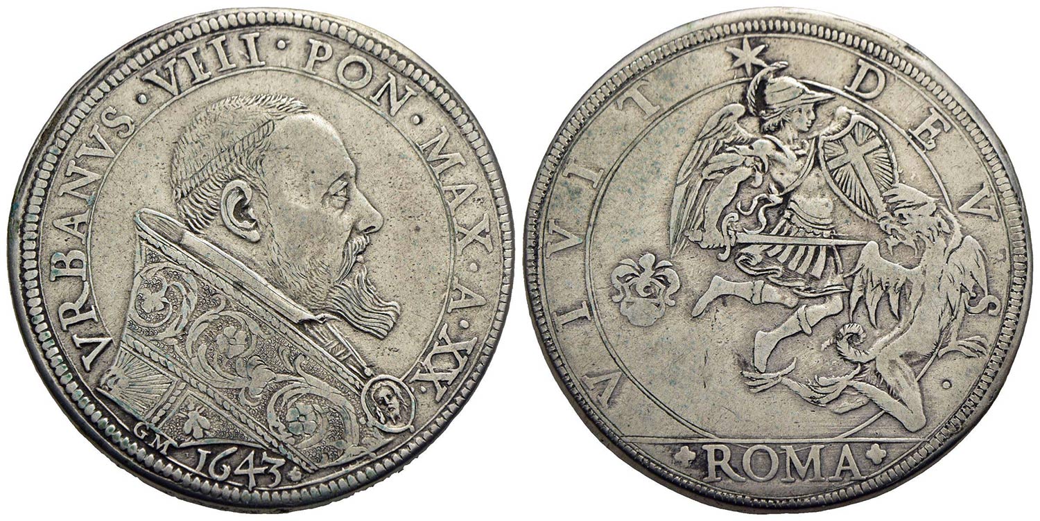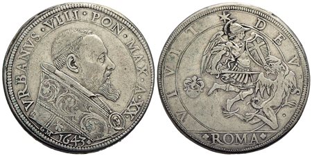ROMA - Urbano VIII (1623-1644) - Piastra - 1643 A. XX - Busto a d. con piviale a fiorami - R/ San Michele insegue il demonio - (AG g. 31,5) R CNI 535; Munt. 41 Ex Asta Ratto Novembre 1962