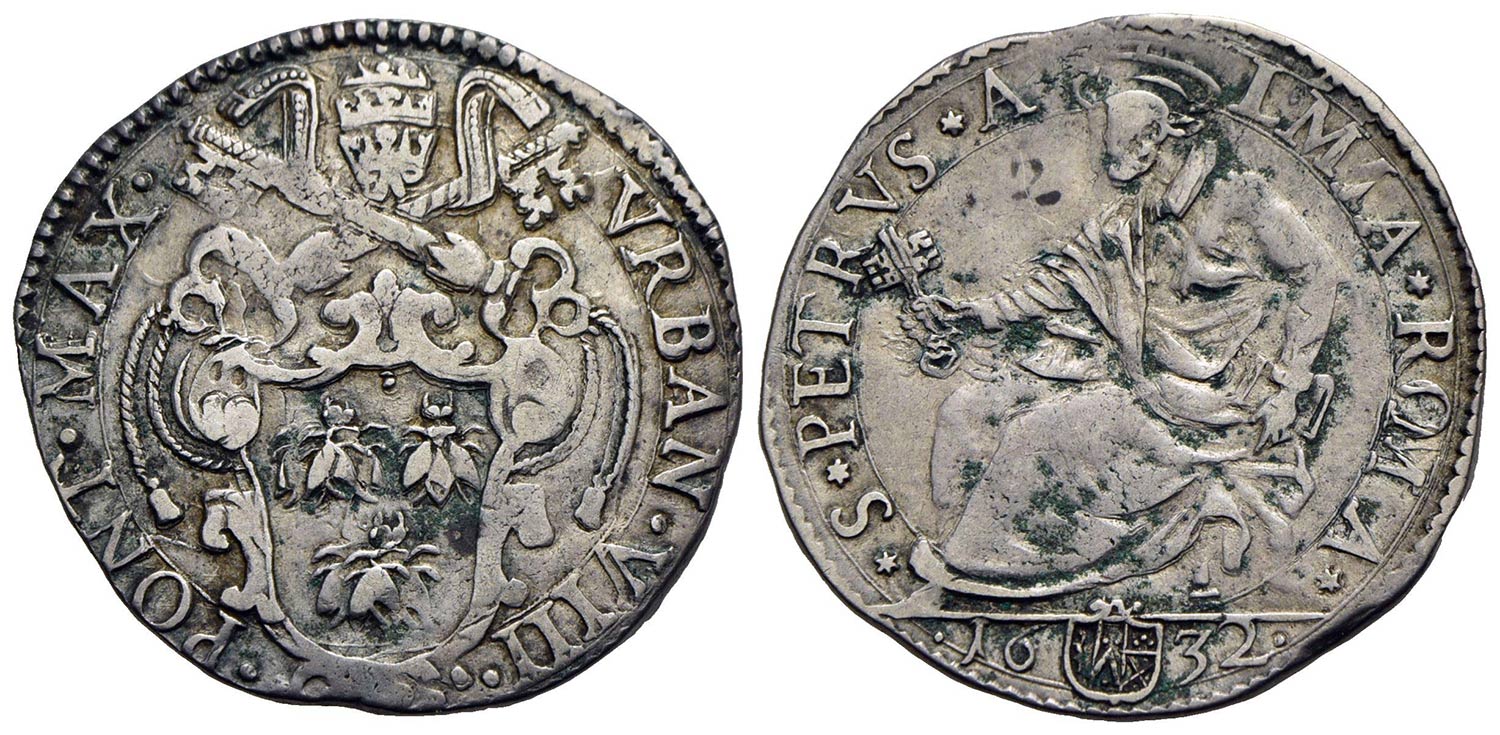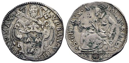 ROMA - Urbano VIII (1623-1644) - Testone - 1632 - Stemma - R/ San Pietro seduto - (AG g. 9,43) Ser. 118; Munt. 50