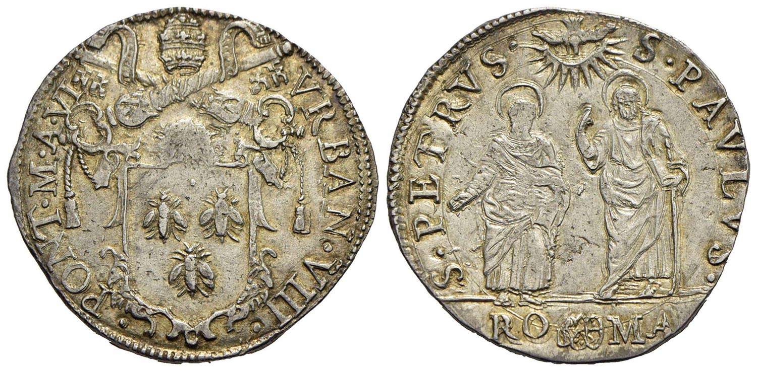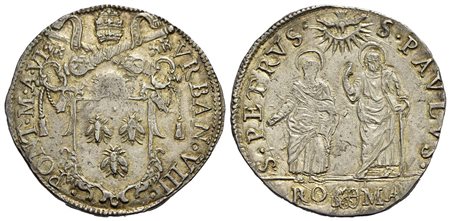 ROMA - Urbano VIII (1623-1644) - Testone - A. VI - Stemma sormontato da chiavi e tiara - R/ San Pietro e San Paolo - (AG g. 9,64) R CNI 262; Munt. 66 Metallo lucente