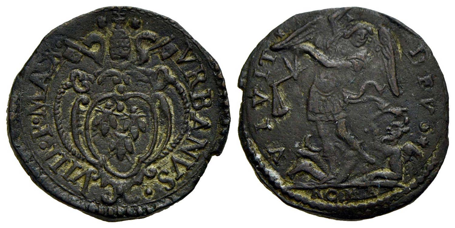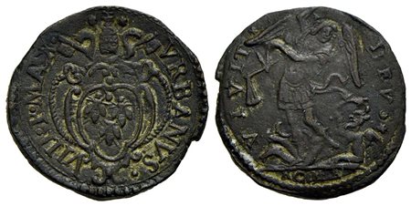 ROMA - Urbano VIII (1623-1644) - Quattrino - Stemma trilobato in cornice - R/ S. Michele scaccia Lucifero - (CU g. 3,09) CNI 773; Munt. 194