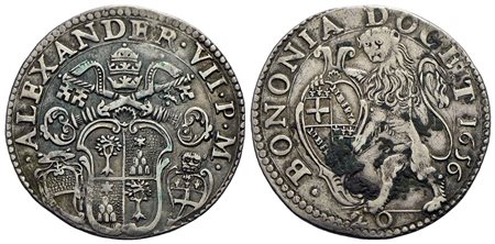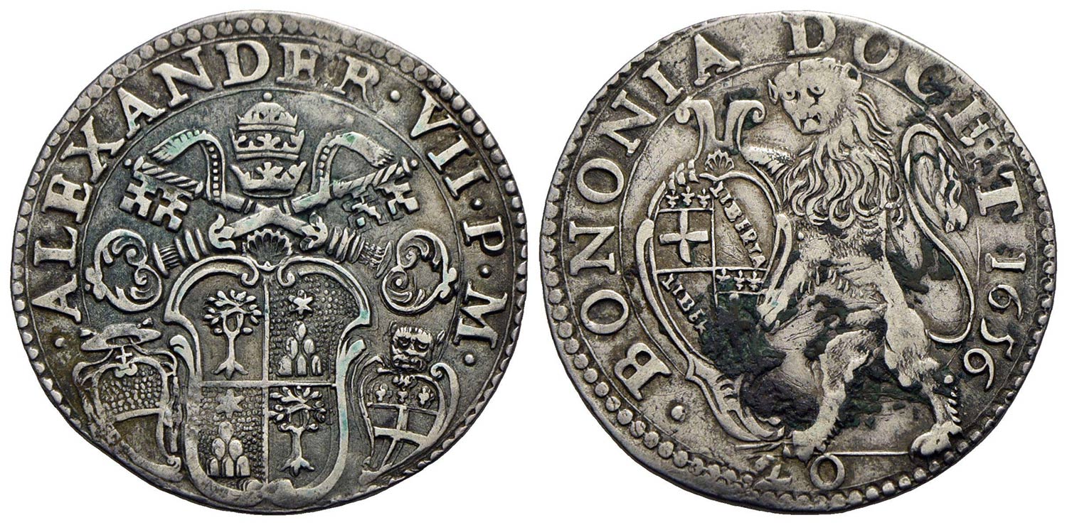 BOLOGNA - Alessandro VII (1655-1667) - Lira - 1656 - Stemma a targa oblunga - R/ Leone rampante a s.