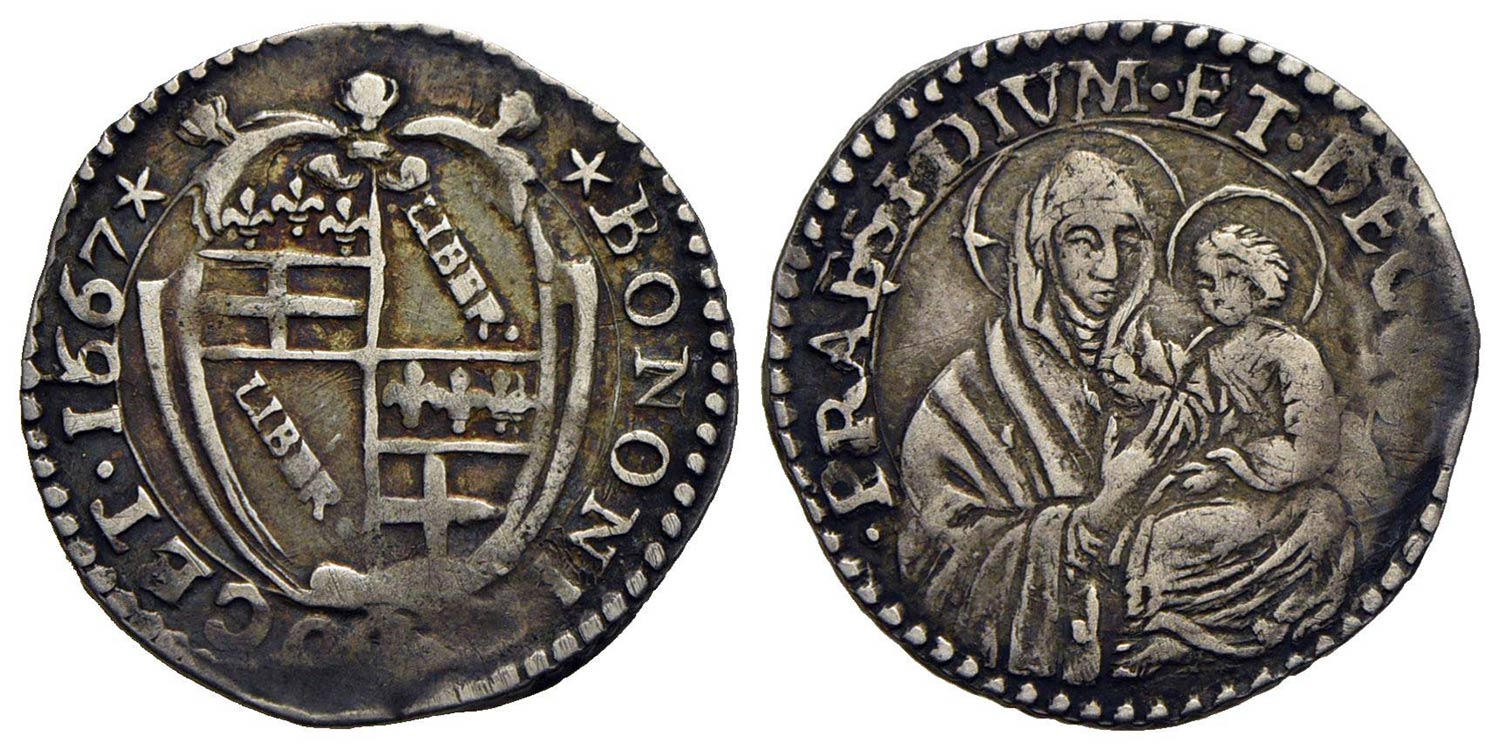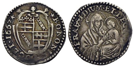 BOLOGNA - Alessandro VII (1655-1667) - Carlino - 1667 - Stemma - R/ Busto della Madonna di San Luca col Bambino - (AG g. 1,83) R CNI 113; Munt. 71a