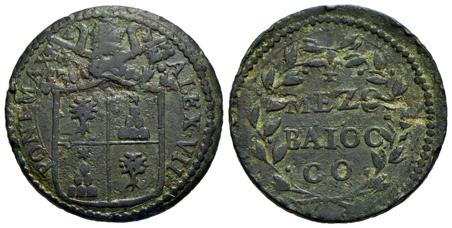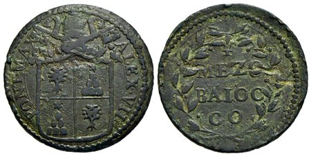 GUBBIO - Alessandro VII (1655-1667) - Mezzo baiocco - Stemma a targa - R/ Scritta in corona d'alloro - (CU g. 8) R CNI 6; Munt. 97