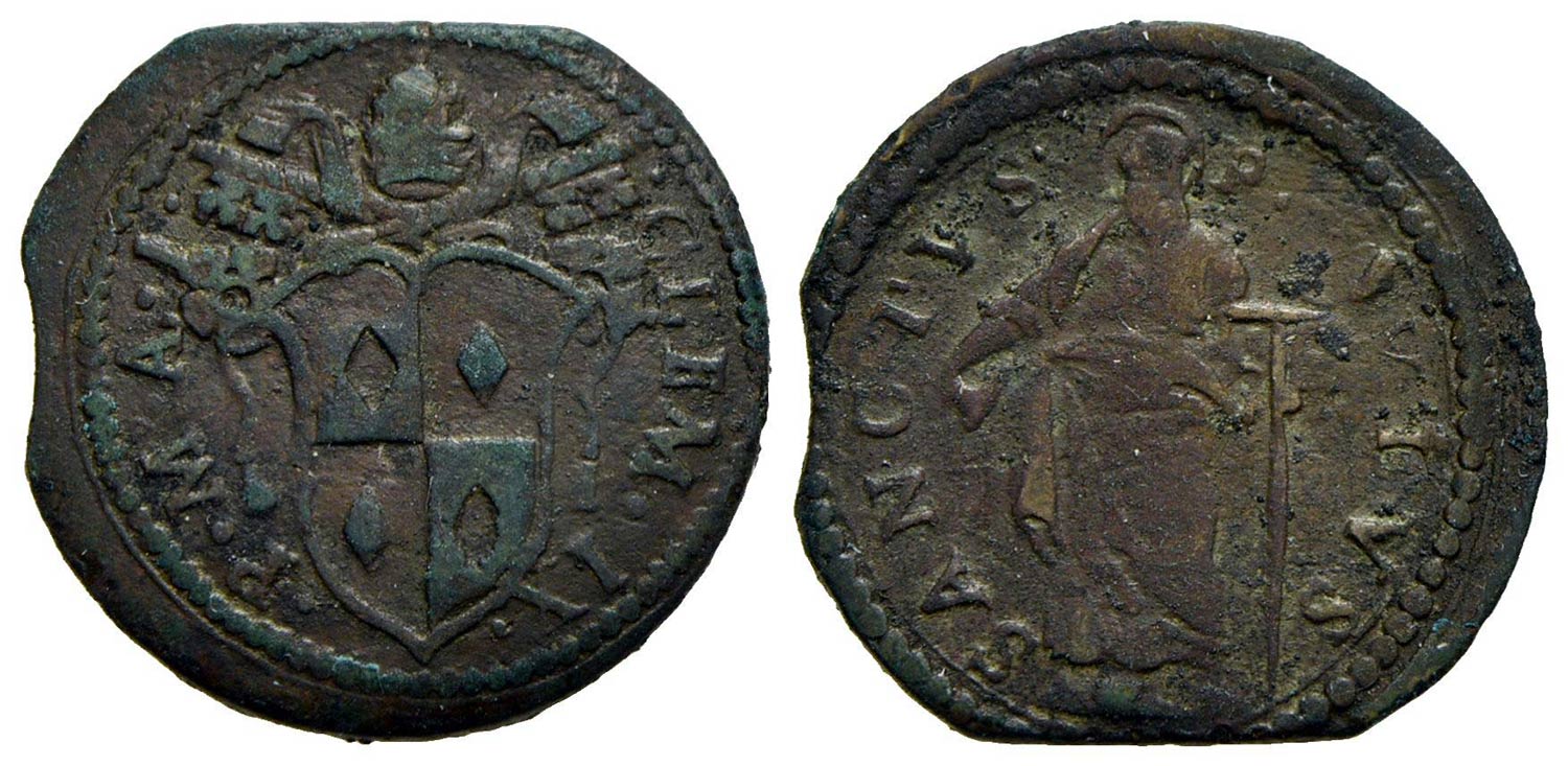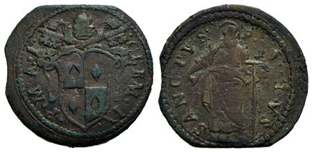 GUBBIO - Clemente IX (1667-1669) - Quattrino - A. I - Stemma sormontato da triregno e chiavi decussate - R/ San Paolo stante con spada - (CU g. 3,44) R CNI 1; Munt. 28
