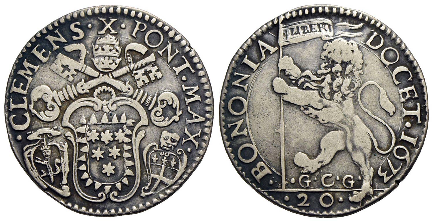 BOLOGNA - Clemente X (1670-1676) - Lira - 1673 - Stemma a targa semiovale - R/ Leone vessillifero ra