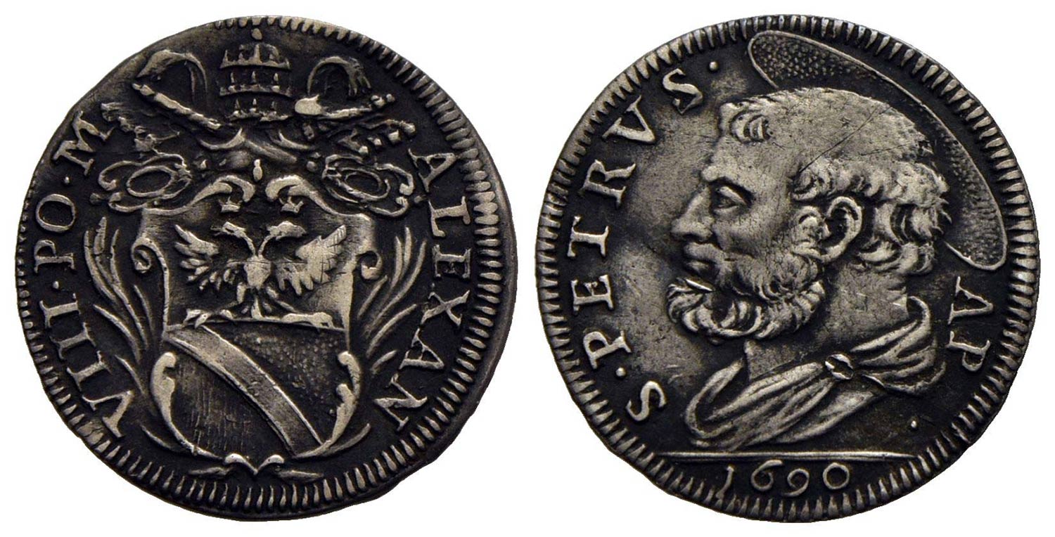 ROMA - Alessandro VIII (1689-1691) - Grosso - 1690 - Stemma a targa - R/ Testa del Santo a s. - (AG g. 1,21) Ser. 50; Munt. 30 var. I