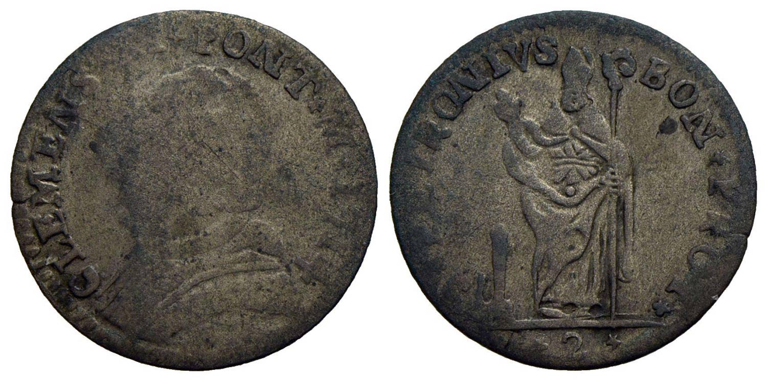 BOLOGNA - Clemente XI (1700-1721) - Muraiola da 2 bolognini - 1714 - Busto con camauro a s. - R/ San Petronio con pastorale - (MI g. 1,3) RR CNI 113; Munt. 201
