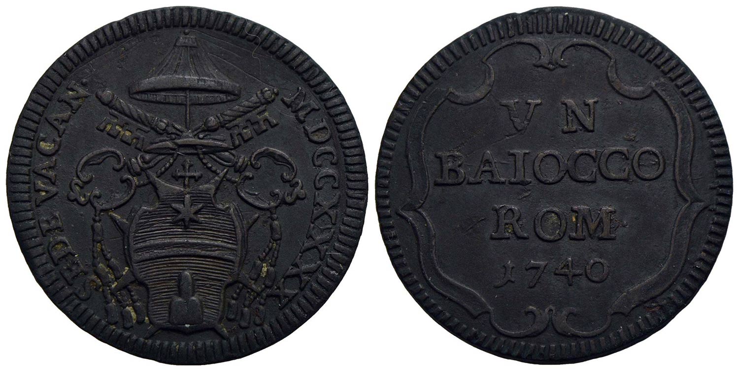 ROMA - Sede Vacante (1740) - Baiocco - 1740 - Stemma piccolo ovale - R/ Scritta in cartella tonda - (CU g. 11,87) R CNI 29; Munt. 21