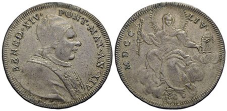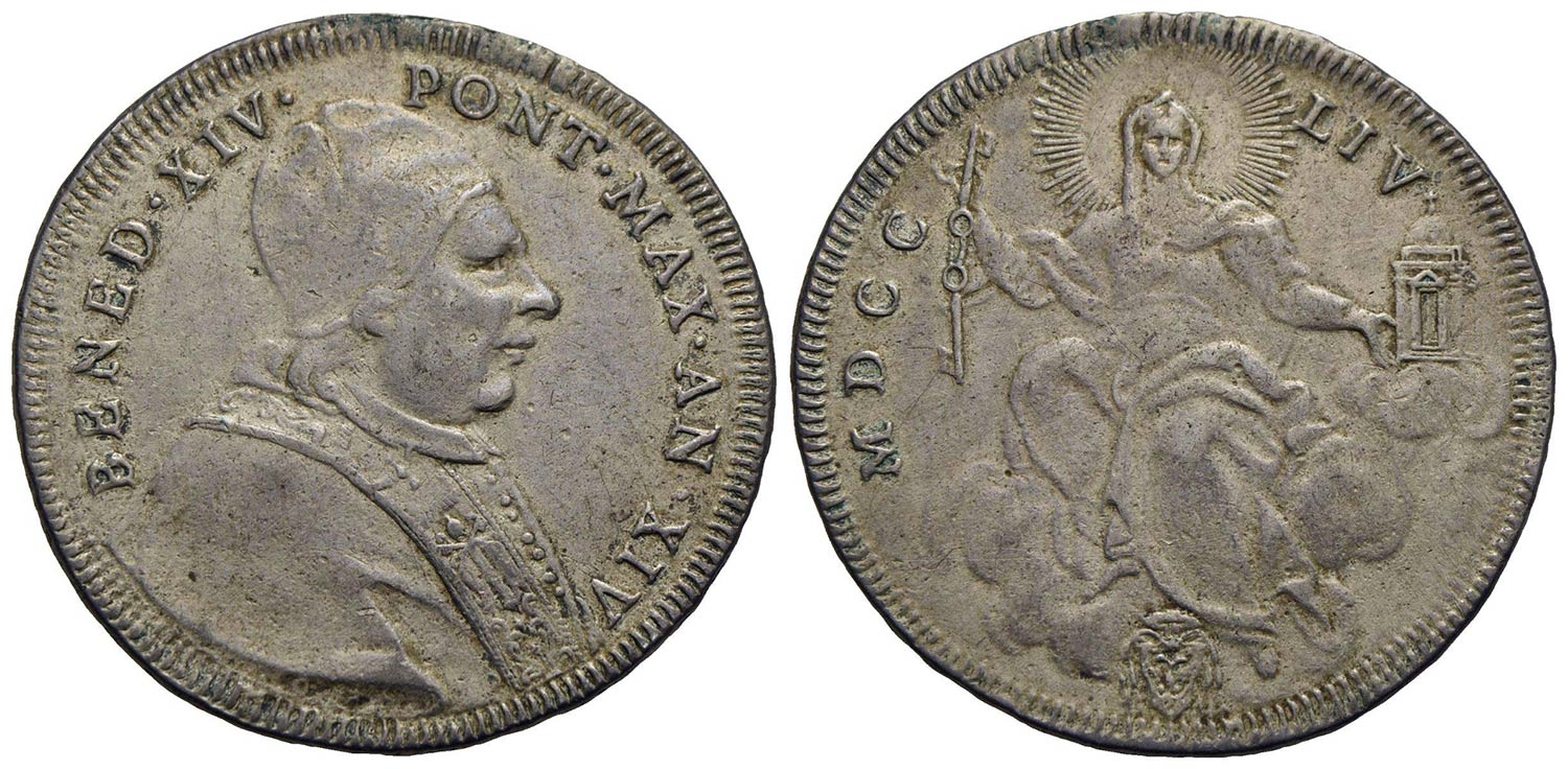 ROMA - Benedetto XIV (1740-1758) - Mezzo scudo - 1754 A. XIV - Busto a d. con camauro - R/ La Chiesa