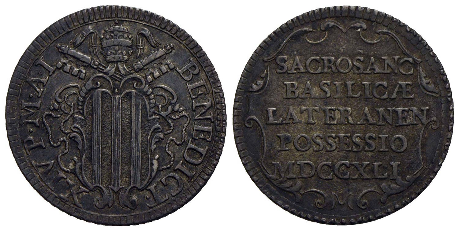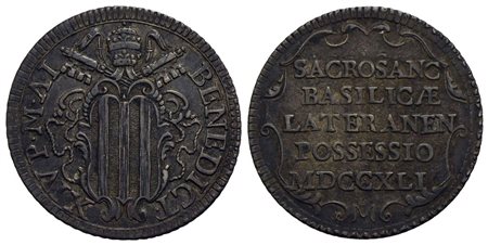 ROMA - Benedetto XIV (1740-1758) - Giulio - 1741 A. I - Stemma a targa sagomata - R/ Scritta in cart