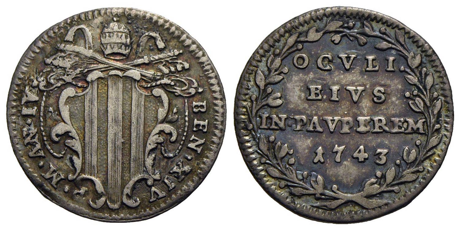 ROMA - Benedetto XIV (1740-1758) - Grosso - 1743 A. IV - Stemma a targa sagomata - R/ Scritta in corona d'alloro - (AG g. 1,26) CNI manca; Munt. 77
