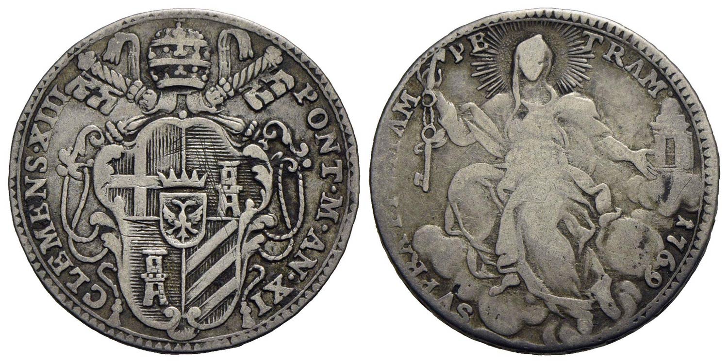 ROMA - Clemente XIII (1758-1769) - Quinto di scudo - 1769 A. XI - Stemma ovale sagomato - R/ La Chie