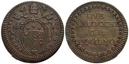 FOLIGNO - Pio VI (1775-1799) - 2 Baiocchi - A. XX - (CU g. 21,95) RR CNI 26; Munt. 331<br>BB-SPL<br>