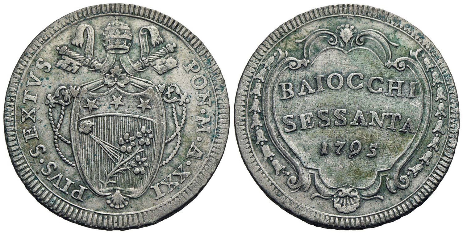 ROMA - Pio VI (1775-1799) - 60 Baiocchi - 1795 A. XXI - (MI g. 22,24) R CNI 281; Munt. 59