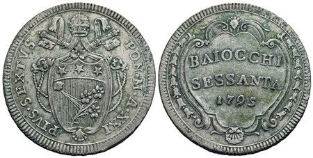 ROMA - Pio VI (1775-1799) - 60 Baiocchi - 1795 A. XXI - (MI g. 22,24) R CNI 281; Munt. 59<br>BB+<br>