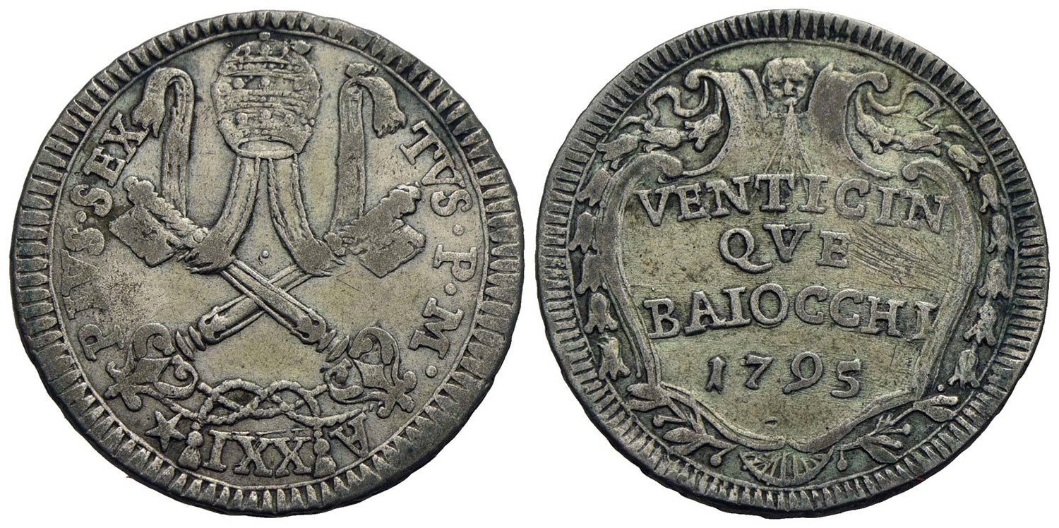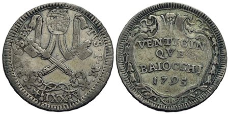 ROMA - Pio VI (1775-1799) - 25 Baiocchi - 1795 A. XXI - (MI g. 9,19) CNI 282; Munt. 66a<br>BB+<br><b