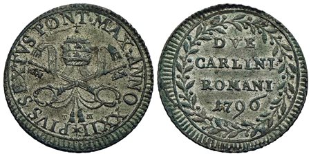 ROMA - Pio VI (1775-1799) - 2 Carlini - 1796 A. XXII - (MI g. 4,31) CNI 343; Munt. 83<br>FDC<br><br>
