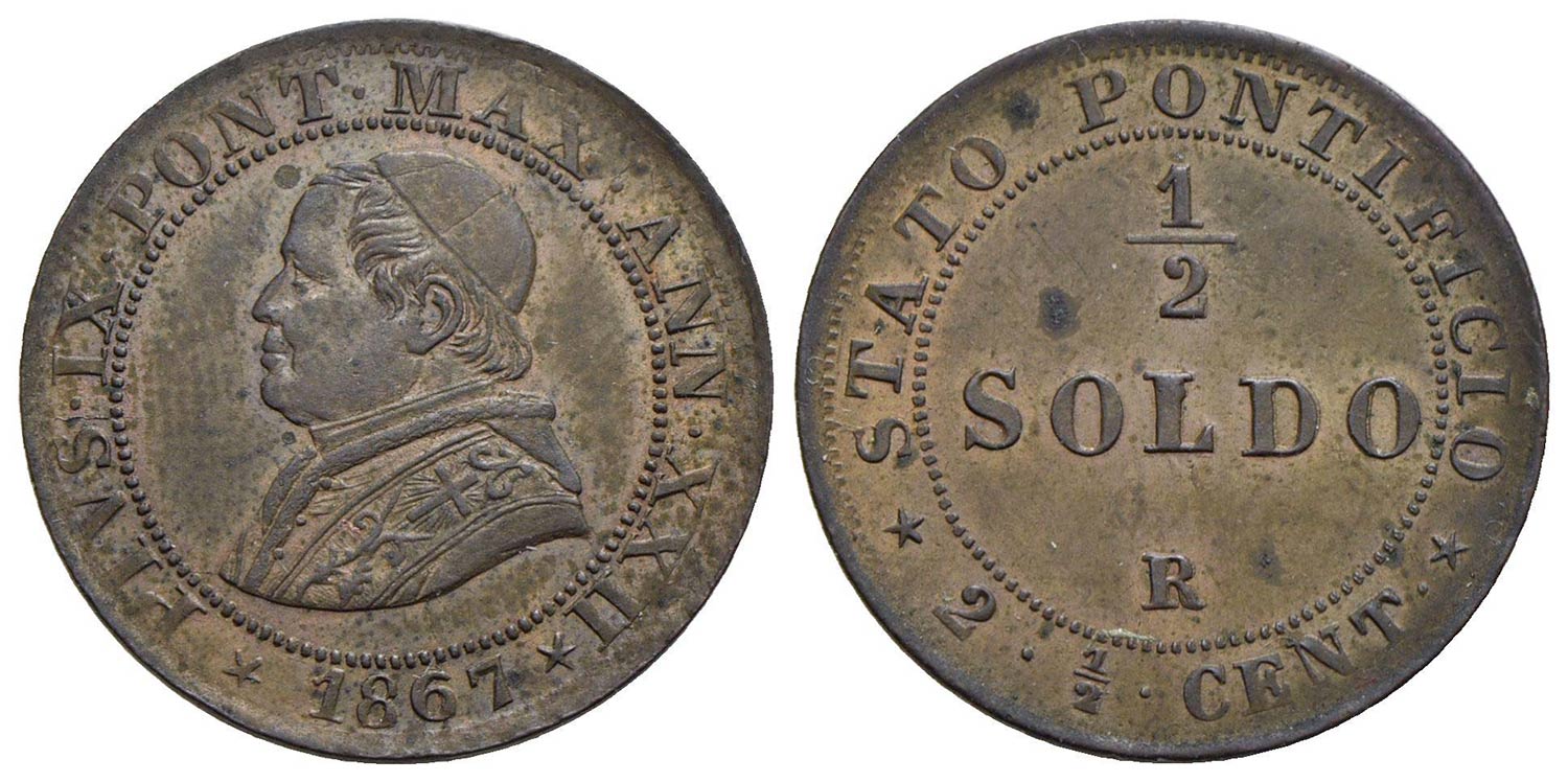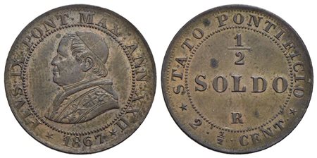 ROMA - Pio IX (1866-1878) - Mezzo soldo - 1867 A. XXII - (CU g. 2,42) Pag. 606; Mont. 416