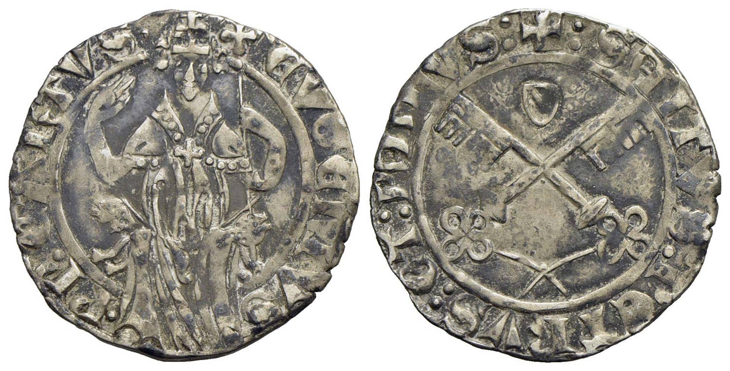 AVIGNONE - Eugenio IV (1431-1447) - Carlino - Il Papa in trono - R/ Chiavi decussate - (AG g. 2) RR