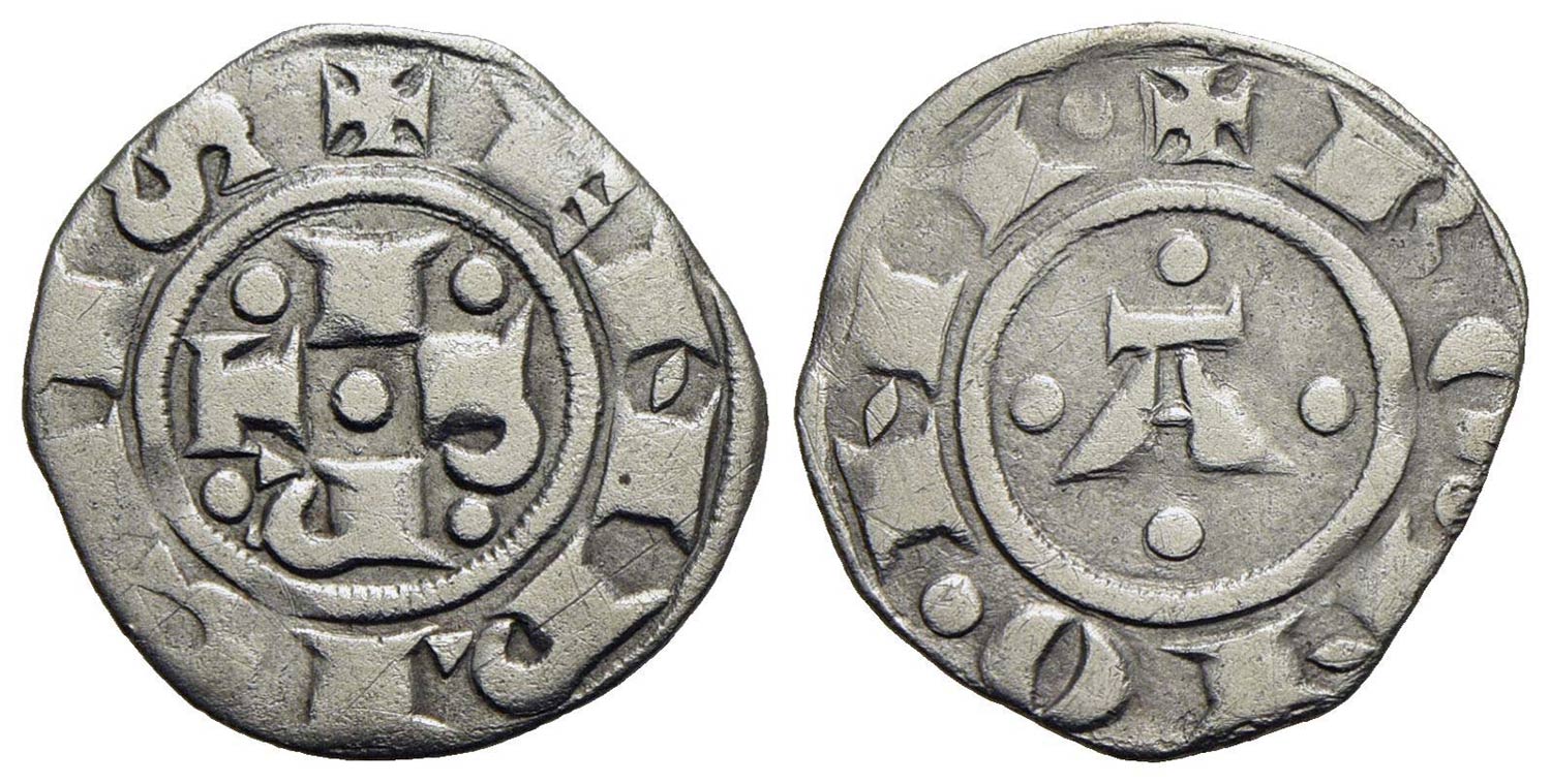 BOLOGNA - Repubblica, a nome di Enrico VI Imperatore (1191-1327) - Bolognino grosso - Nel campo lettere IPRT a croce - R/ Grande A - (AG g. 1,27) CNI 9/49; MIR 1 R/ Globetto a s. della croce