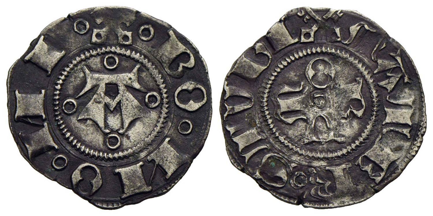 BOLOGNA - Anonime dei Pontefici (1360-1450) - Bolognino - Grande A - R/ ORVM a croce - (AG g. 1,02)