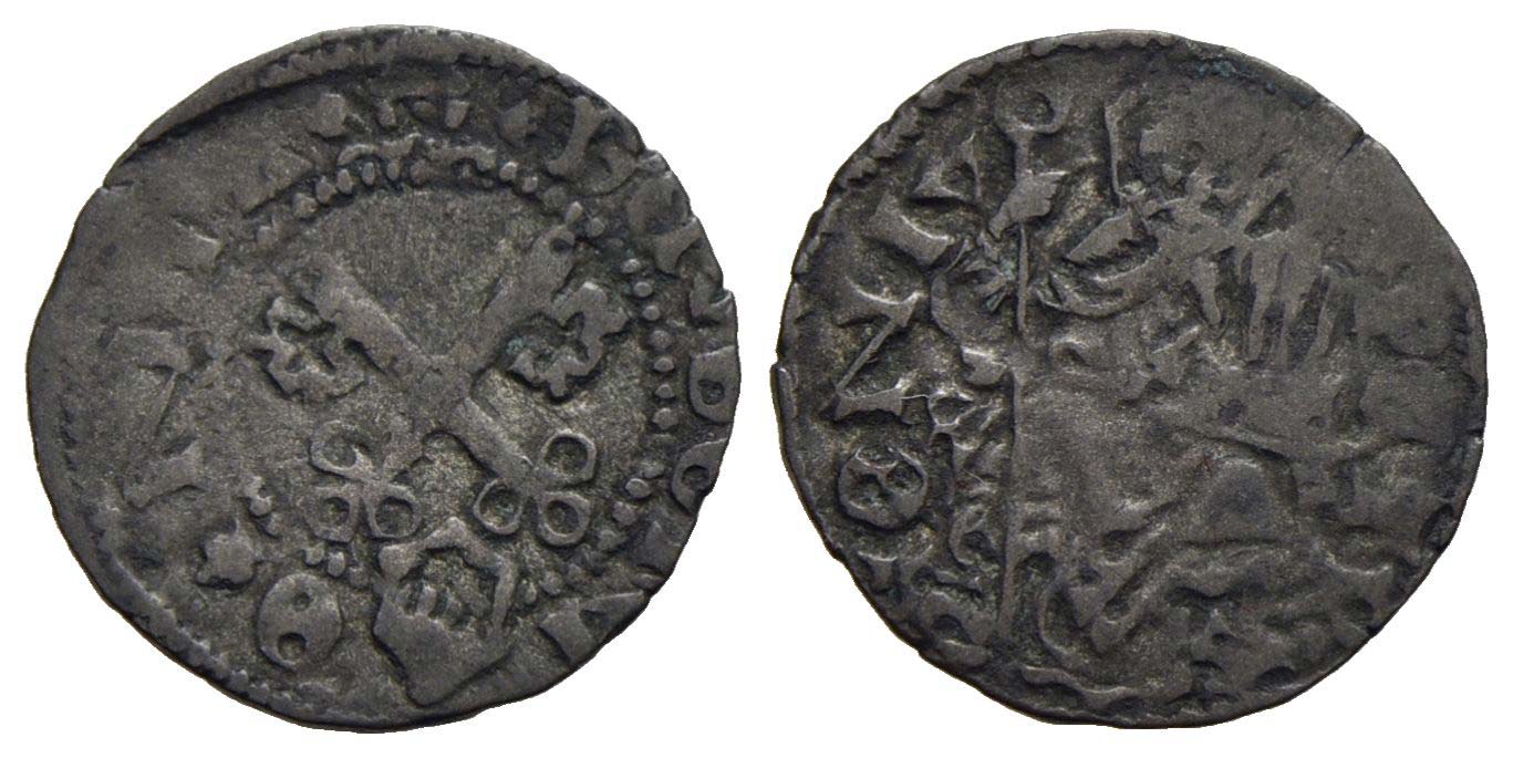 BOLOGNA - Anonime dei Bentivoglio (1446-1506) - Quattrino - Chiavi decussate - R/ San Petronio seduto con pastorale e città - (MI g. 0,68) CNI 60/80; MIR 26