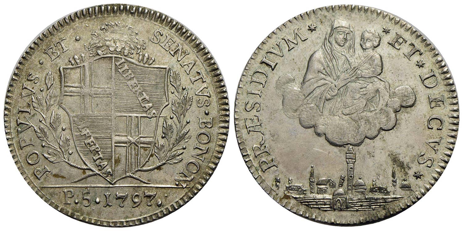 BOLOGNA - Governo Popolare (1796-1797) - Mezzo scudo - 1797 - AG R Pag. 40/40f; Mont. 60/66 Bei fondi lucenti