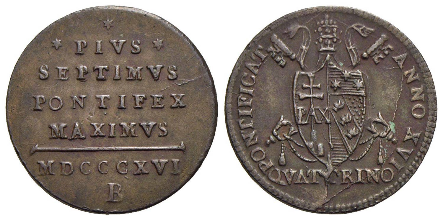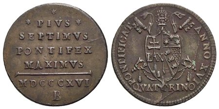 BOLOGNA - Pio VII (1800-1823) - Quattrino - 1816 A. XVI - CU R Pag. 106; Mont. 140 IV tipo<br>BB+