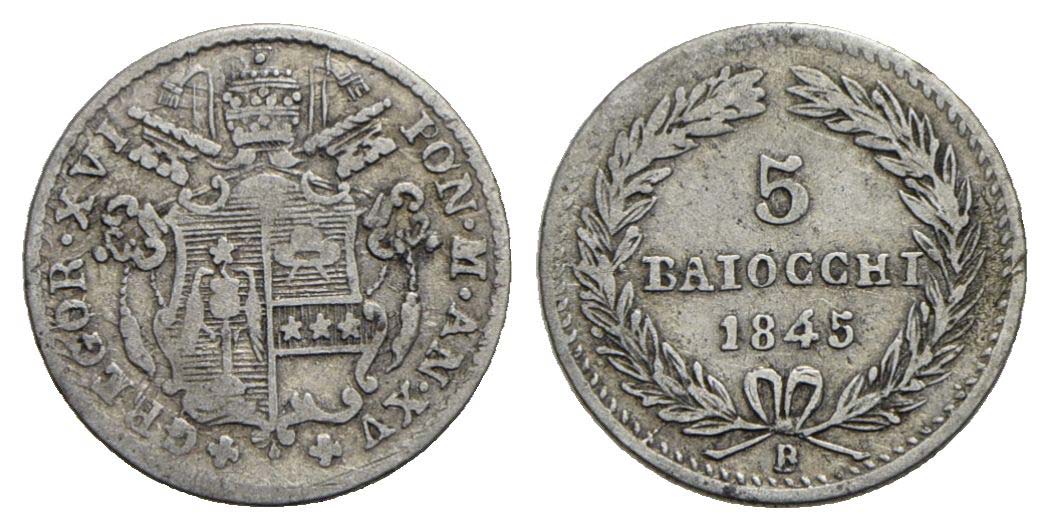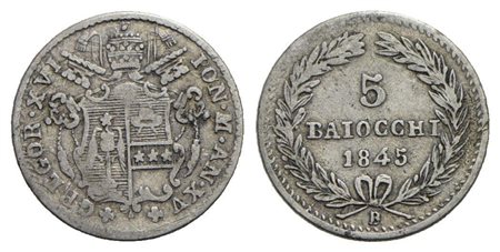 BOLOGNA - Gregorio XVI (1831-1846) - 5 Baiocchi - 1845 A. XV - AG RR Pag. 194b; Mont. 175 B piccola