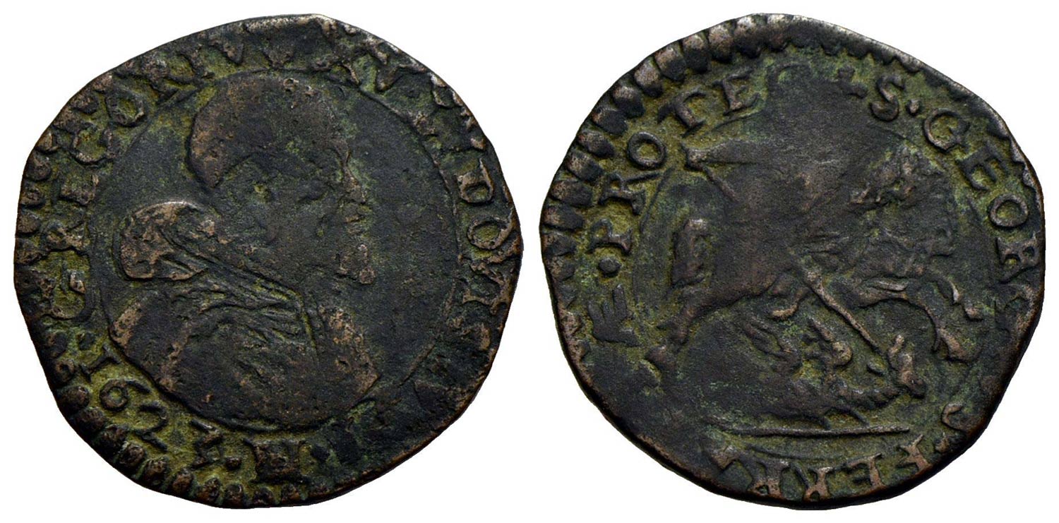 FERRARA - Gregorio XV (1621-1623) - Quattrino - 1623 - Busto a d. - R/ San Giorgio a cavallo a d. uccide il drago - (CU g. 2,64) CNI 77; Munt. 67a
