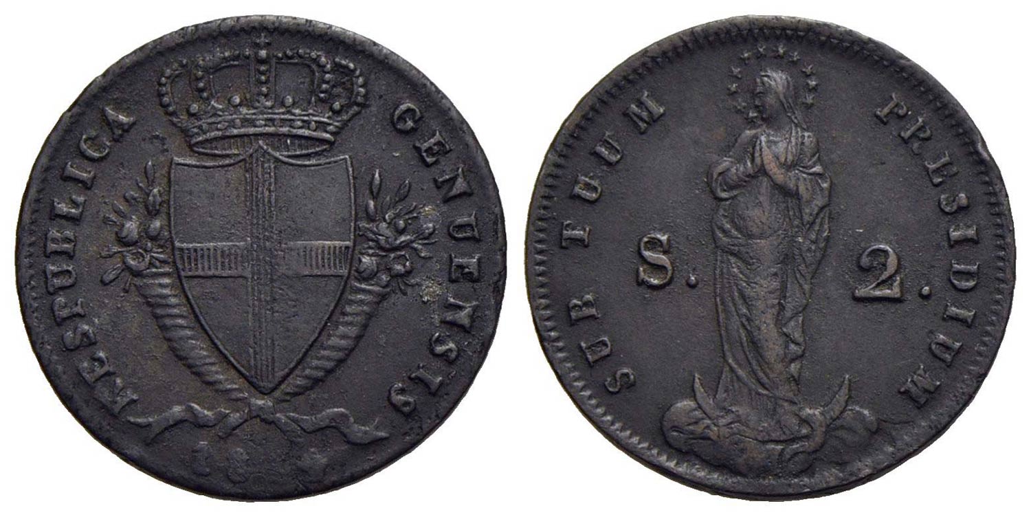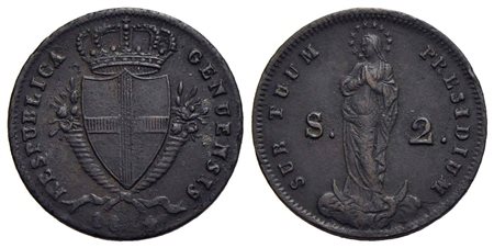 GENOVA - Repubblica Genovese (1814) - 2 Soldi - 1814 - MI Pag. 33a; Mont. 115 Con cartellino del col