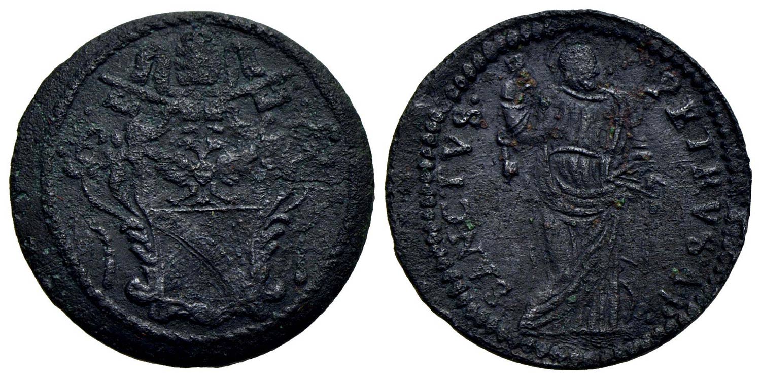 GUBBIO - Alessandro VIII (1689-1691) - Quattrino - Stemma - R/ San Paolo - CU R CNI 1; Munt. 47<br>B