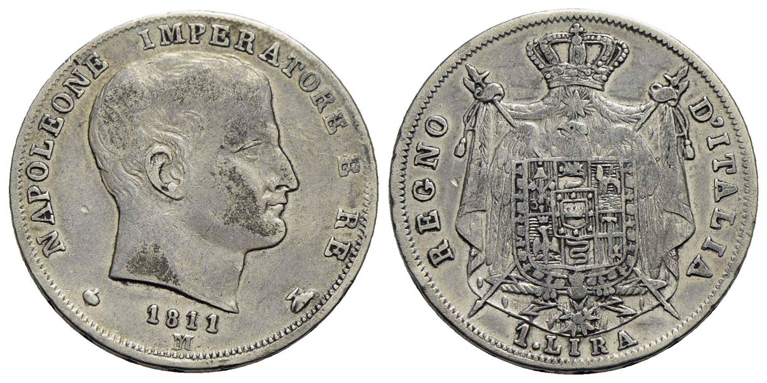 MILANO - Napoleone I, Re d'Italia (1805-1814) - Lira - 1811 - AG Pag. 44; Mont. 258 Puntali aguzzi
