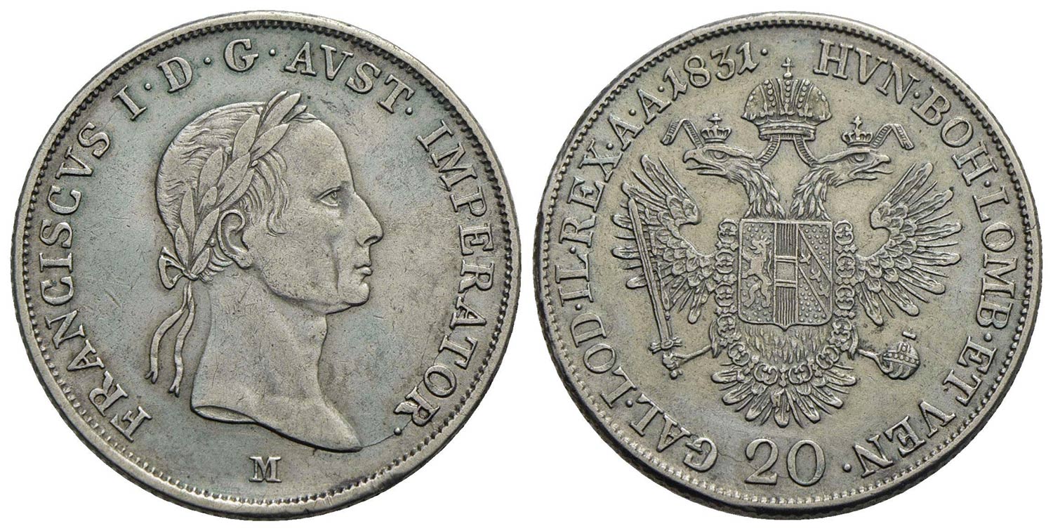 MILANO - Francesco I d'Asburgo-Lorena (1815-1835) - 20 Kreuzer - 1831 - AG Pag. 146; Mont. 360<br>qS