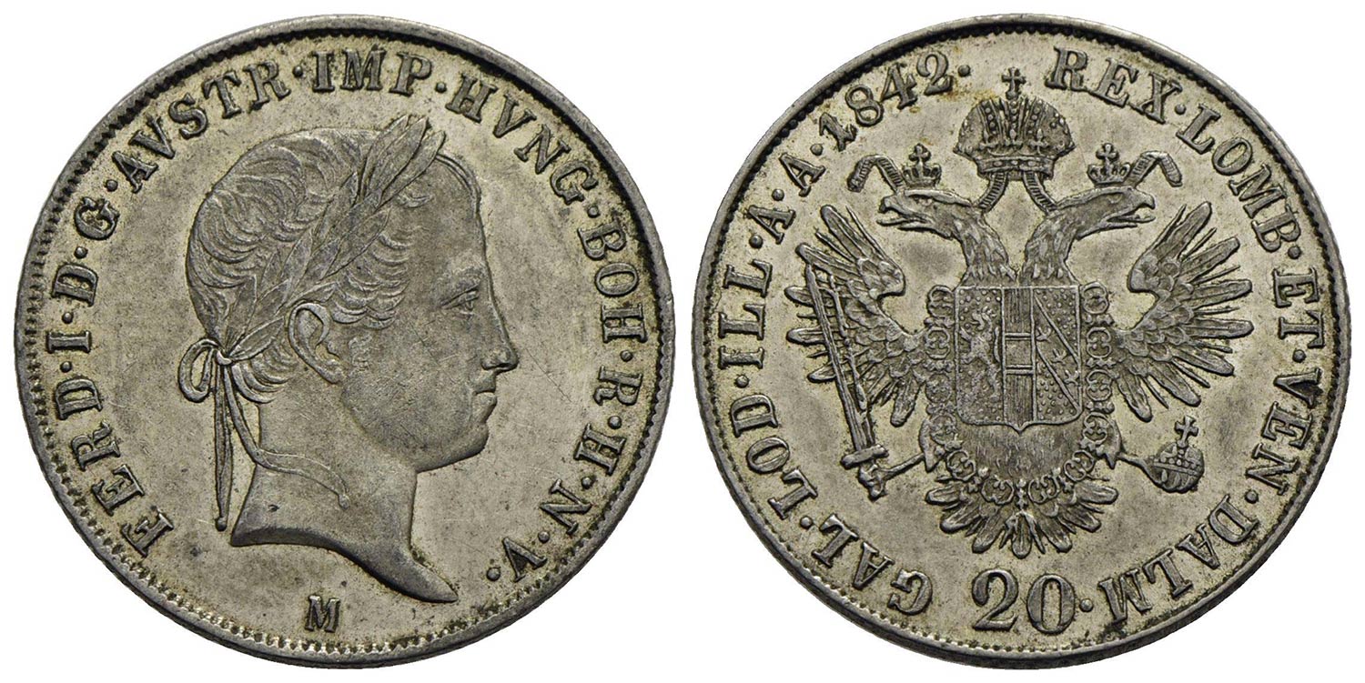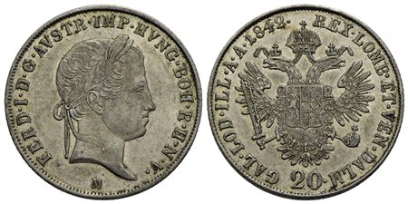 MILANO - Ferdinando I d'Asburgo-Lorena (1835-1848) - 20 Kreuzer - 1842 - AG NC Pag. 195; Mont. 407<b