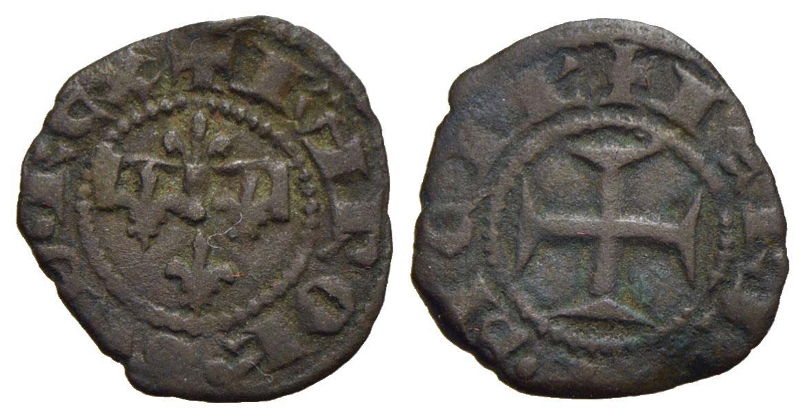 NAPOLI - Roberto d'Angiò (1309-1343) - Denaro - Quattro fiordalisi - R/ Croce - (MI g. 0,54) NC P.R. 3; MIR 29