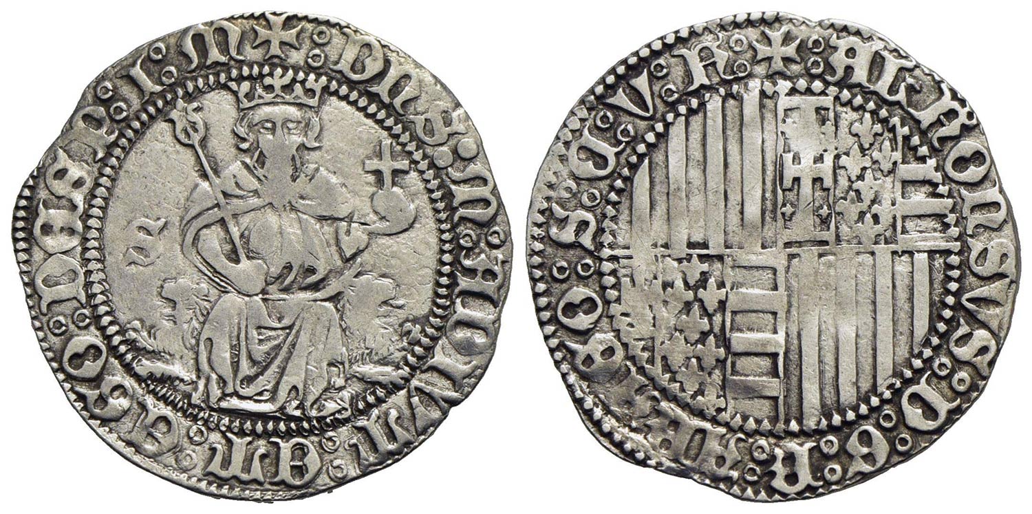 NAPOLI - Alfonso I d'Aragona (1442-1458) - Carlino - Il Re in trono; a s. S - R/ Stemma inquartato -