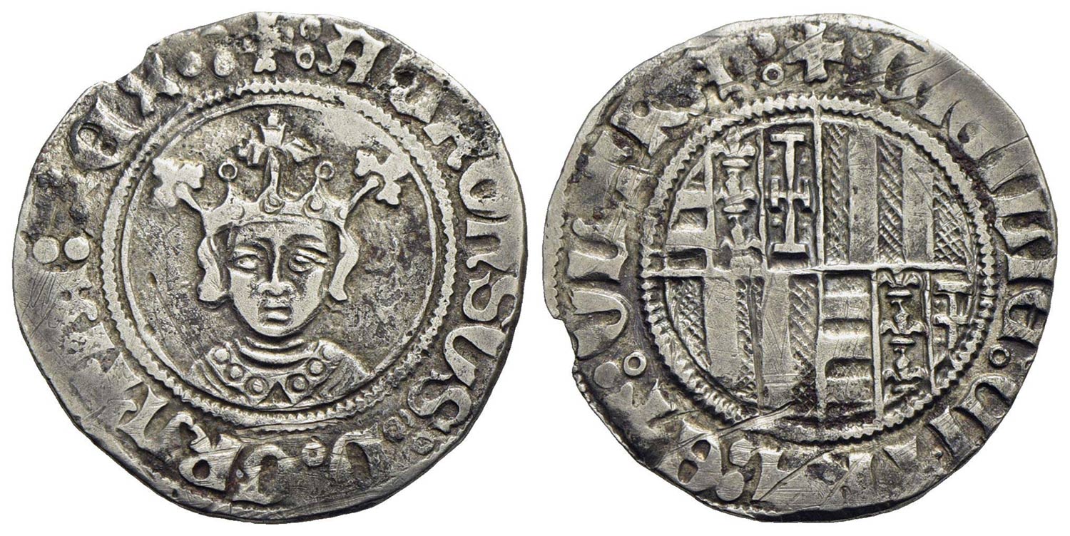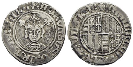 NAPOLI - Alfonso I d'Aragona (1442-1458) - Reale - Busto del Re di fronte - R/ Stemma rotondo inquartato - (AG g. 2,89) R P.R. 7; MIR 57