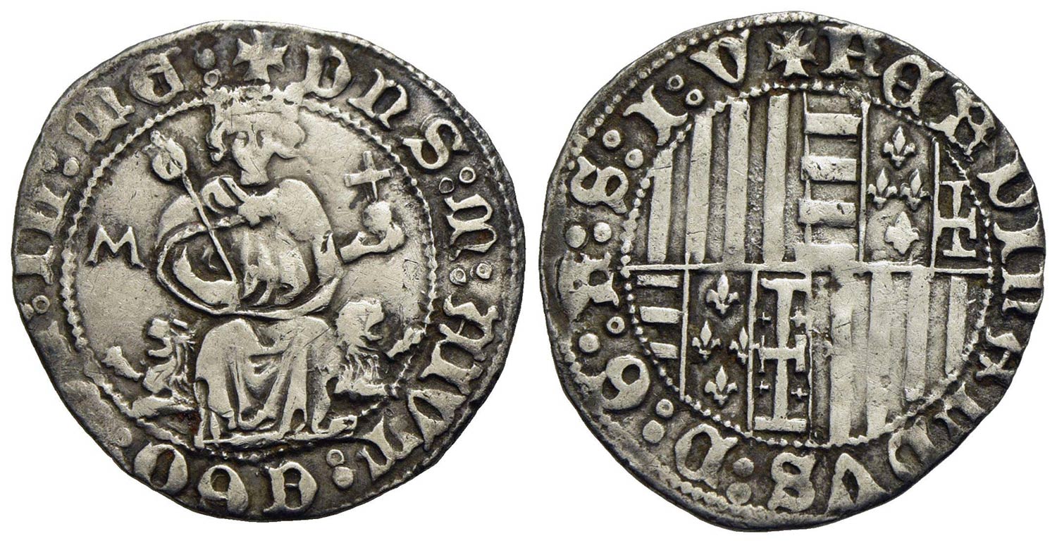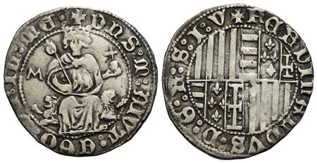 NAPOLI - Ferdinando I d’Aragona (1458-1494) - Carlino - Il Re seduto in trono, M a s. del Re - R/ Stemma - (AG g. 3,46) P.R. 21/d; MIR 72/4