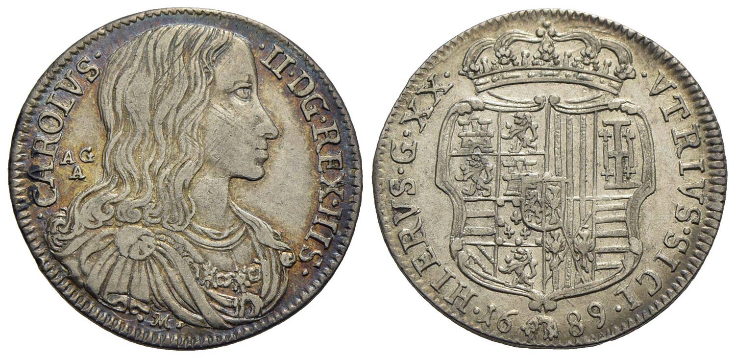 NAPOLI - Carlo II, secondo periodo (1675-1700) - Tarì - 1689 - AG P.R. 17; MIR 299/2<br>BB-SPL