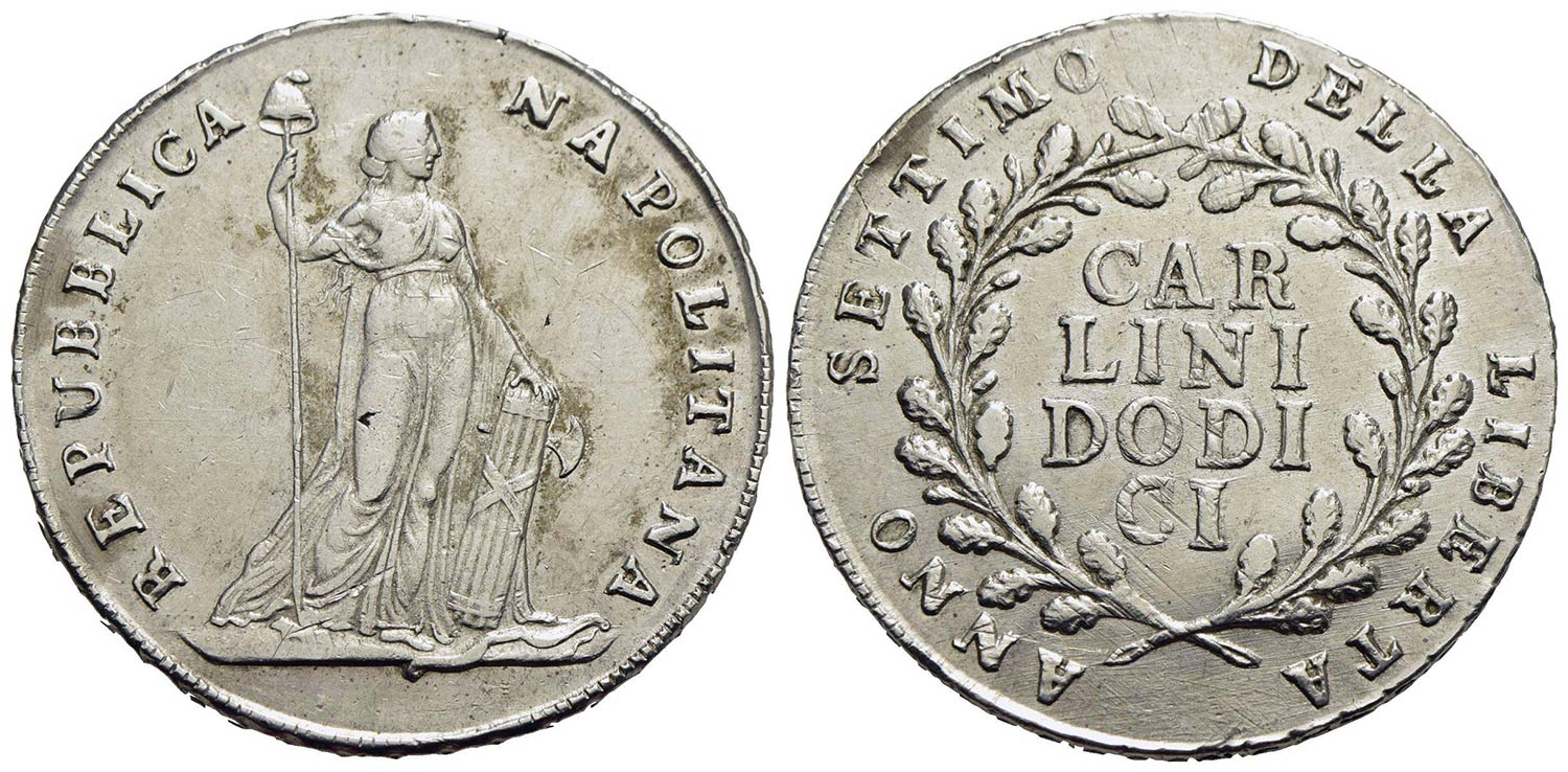 NAPOLI - Repubblica Napoletana (1799) - 12 Carlini - 1799 - AG P.R. 1; Mont. 330<br>BB/BB+