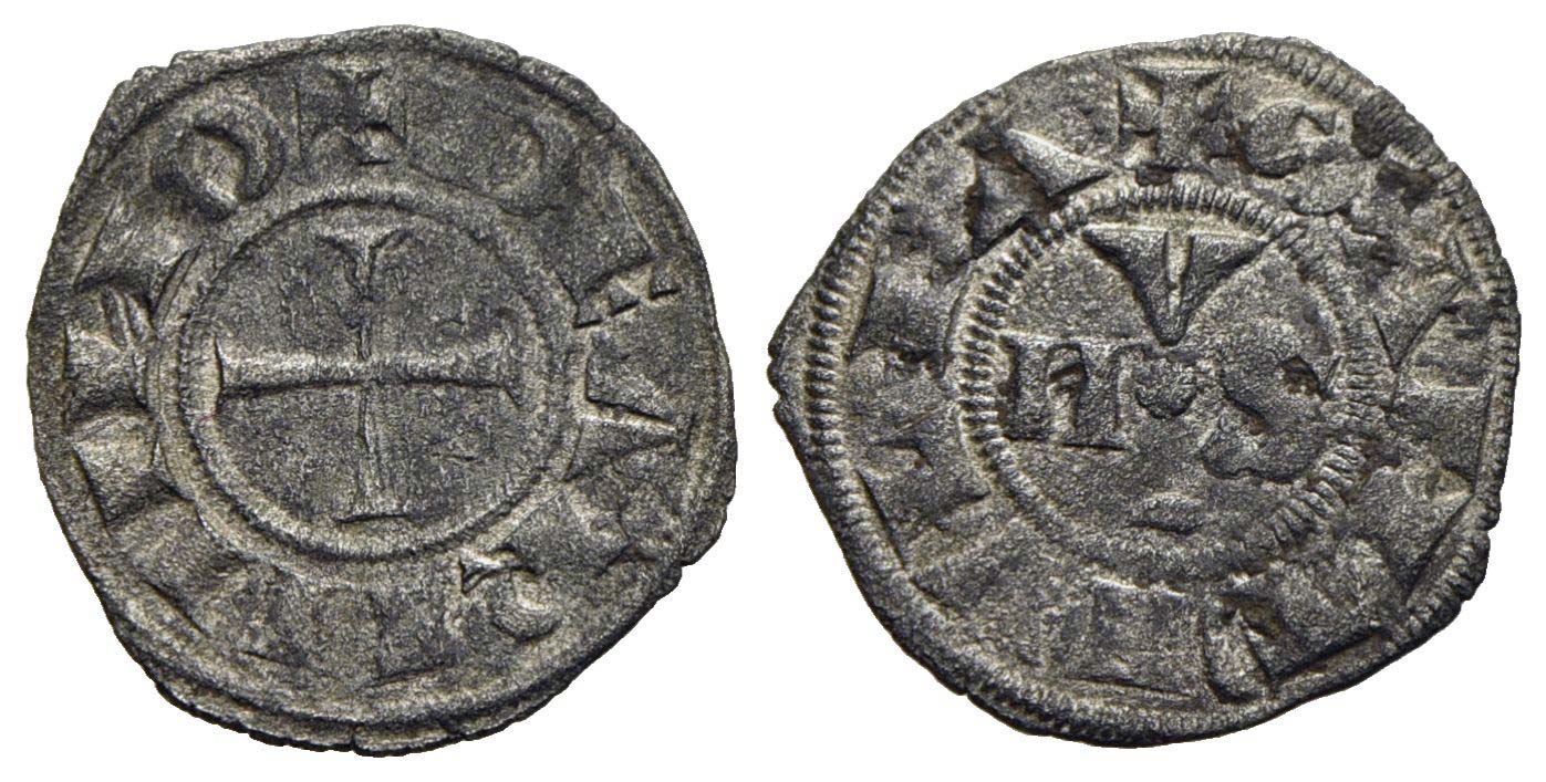 RIMINI - Autonome (1250-1385) - Denaro - Croce patente - R/ NVS attorno a globetto - (MI g. 0,56) NC CNI 29/32; MIR 1354
