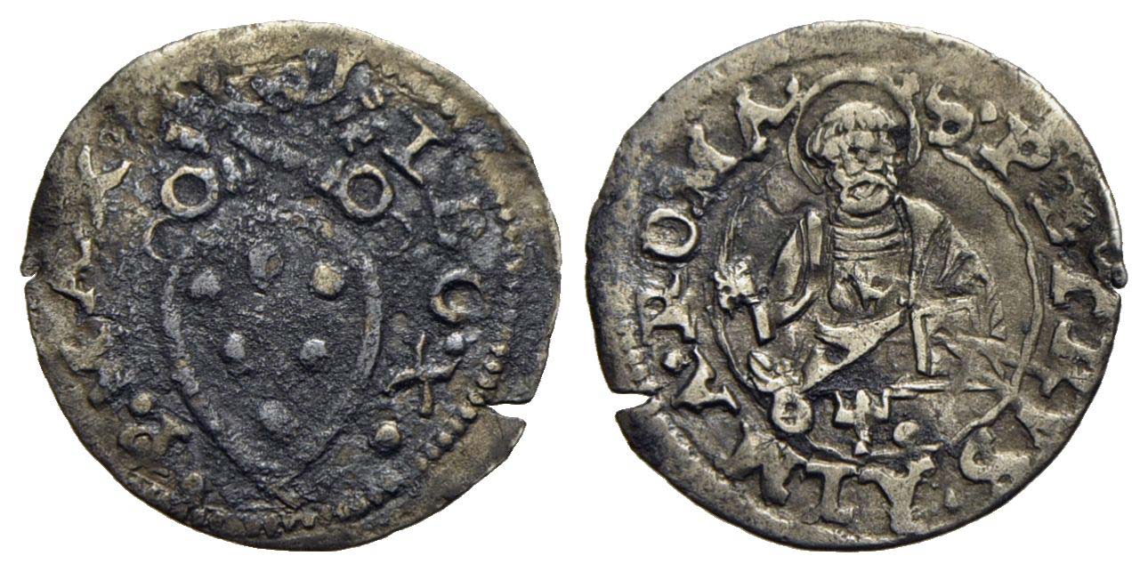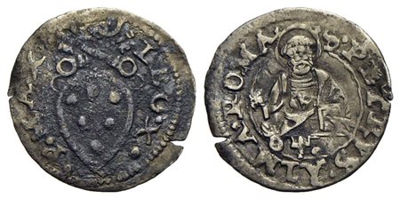 ROMA - Leone X (1513-1521) - Baiocco - Stemma a cuore - R/ Mezza figura del Santo - (AG g. 0,38) R S