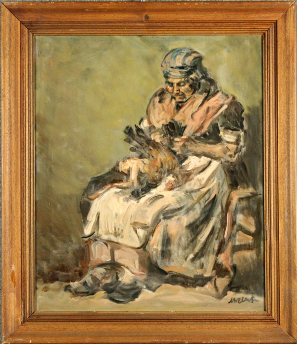 Firmato, datato. MORZENTI NATALE - Nato a Silvano d'Orba (Alessandria) nel 1884. Morto a Martinengo (Bergamo) nel 1947. Sue opere sono custodite nella Galleria d'Arte Moderna di Roma. Dipinto olio su tela raff. ''DONNA SEDUTA''. Firmato in basso a destra. In cornice. Mis. Lung. cm. 50 Alt. cm. 60 ca.