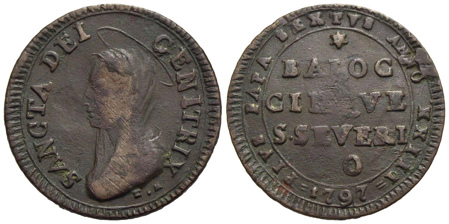 SAN SEVERINO - Pio VI (1775-1799) - Madonnina - 1797 - CU R Ser. 981; Munt. 401