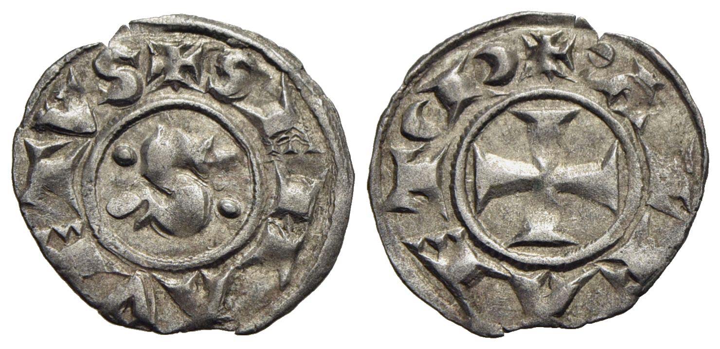 SIENA - Repubblica (Sec. XII-1390) - Denaro Piccolo - (dopo 1250) - Lettera S tra quattro globetti - R/ Croce patente di piccola forma - (MI g. 0,71) CNI 29/31; MIR 484