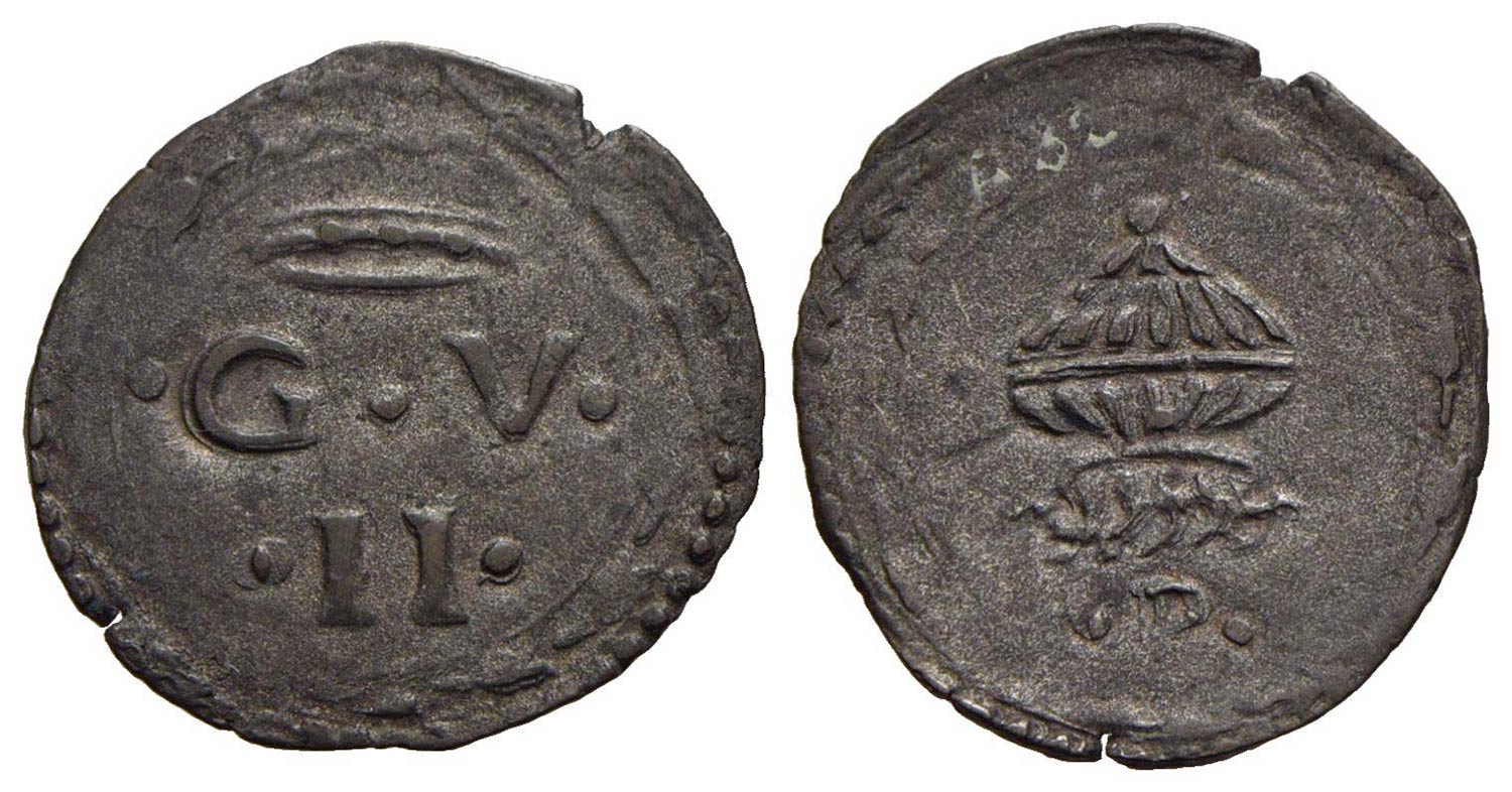 URBINO - Guidobaldo II (1538-1574) - Quattrino - Scritta - R/ Vaso capovolto con fiamme - (CU g. 0,65) CNI 184 e seg.; Cav. 133
