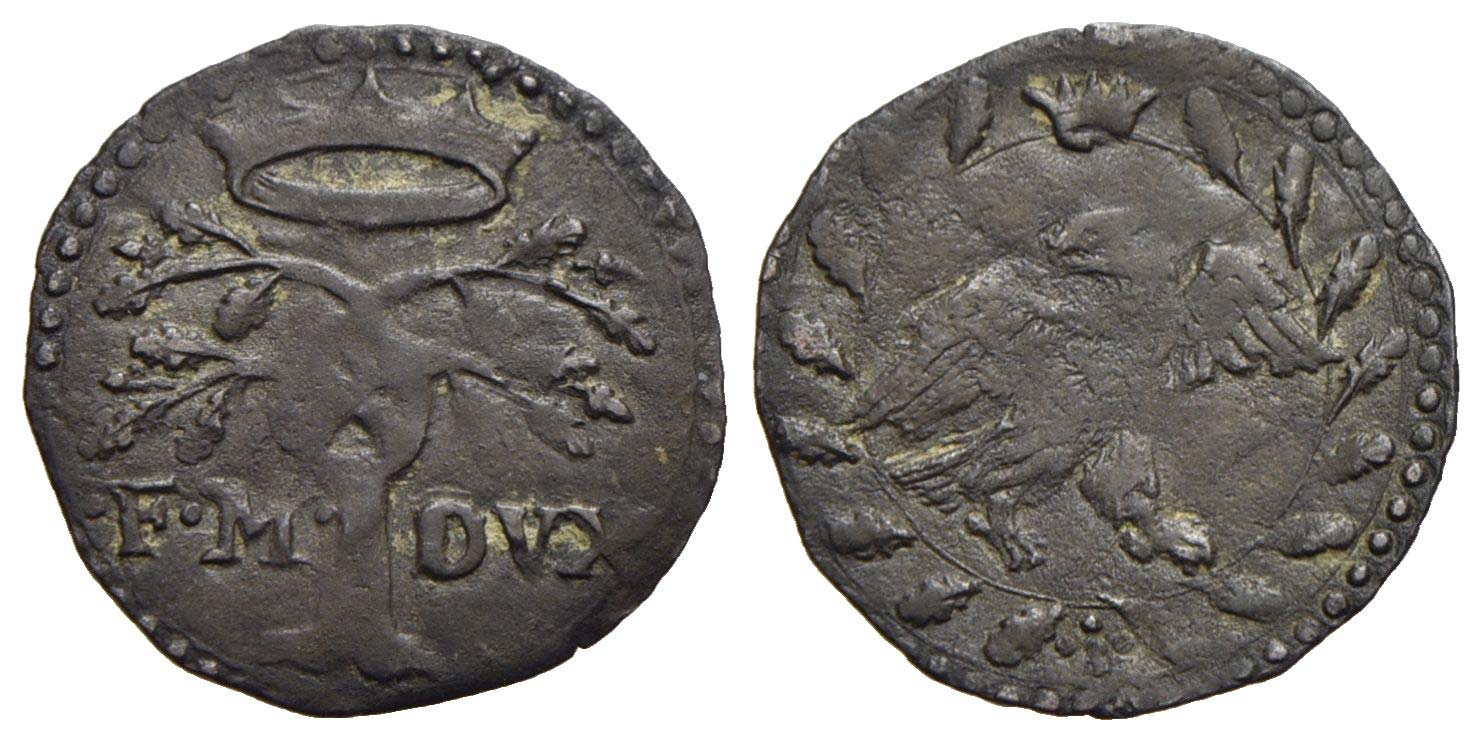 URBINO - Francesco Maria II della Rovere (1574-1624) - Quattrino - Albero di rovere coronato - R/ Aquila - (MI g. 0,63) R CNI 226/234