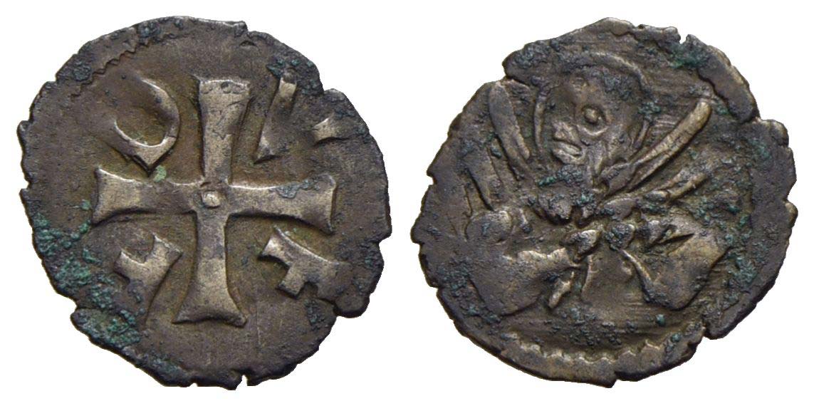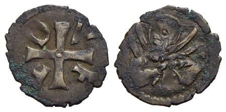 VENEZIA - Francesco Foscari (1423-1457) - Bagattino - (Per Brescia) - Croce accantonata da lettere FFDV - R/ Leone in soldo - (MI g. 0,41) Pao. 13