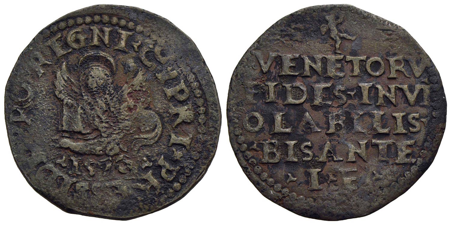 VENEZIA - Assedio di Cipro (1570) - Bisante - 1570 - Leone di San Marco accosciato - R/ Scritta - CU